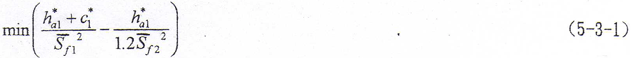 由目標(biāo)函數(shù)(5-3-1)式及約束條件(5-3-2)式便構(gòu)成本問(wèn)題的優(yōu)化數(shù)學(xué)模型。通過(guò)對(duì)優(yōu)化數(shù)學(xué)模型的求解,可以計(jì)算出不同齒模數(shù)及相應(yīng)的鼓度半徑下的優(yōu)化齒頂高系數(shù)值。表5-2給出了幾種不同輸入?yún)?shù)下的求解值,從表中數(shù)據(jù)可以看出,不同齒數(shù)及鼓度半徑,其優(yōu)化齒頂高系數(shù)不同,但都不超過(guò)0.7?紤]到齒頂高系數(shù)的統(tǒng)一,建議采用齒頂高系數(shù)為0.7是適宜的。值得指出的是,這種齒頂高系數(shù)的齒輪是采用標(biāo)準(zhǔn)齒頂高系數(shù)滾刀和插齒刀用特殊方法進(jìn)行加工的。