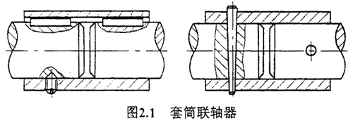 套筒聯(lián)軸器結(jié)構(gòu)如圖2.1所示,由一整套公用套筒并利用鍵,花鍵或錐銷等聯(lián)接件實現(xiàn)與兩軸的聯(lián)接。