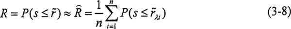 應(yīng)用數(shù)字仿真法求出零件的可靠度R,即在(O,1)內(nèi)產(chǎn)生均勻分布的隨機(jī)數(shù)作為閾值λ1,并利用式(3-7)計(jì)算此時零件的可靠度Rλi,在仿真次數(shù)n足夠大時,零件的可靠度可表示為: