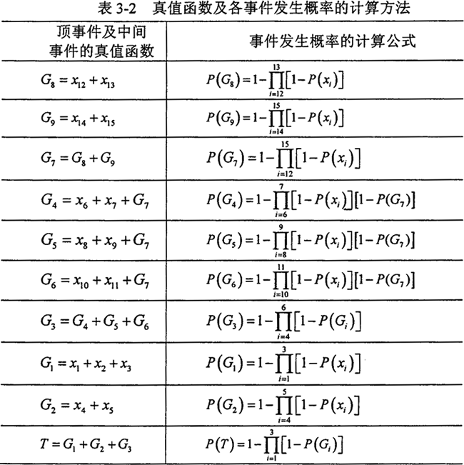 表中 P(T)——頂事件發(fā)生概率;