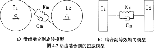 根據(jù)各種零件動力學(xué)作用的不同,可把組成系統(tǒng)的各元件分成兩類,即慣性元件和彈性元件。慣性元件指的是各軸及軸上的旋轉(zhuǎn)質(zhì)量,如齒輪、軸上直徑較大的凸緣等盤類零件。當(dāng)傳動系統(tǒng)發(fā)生扭轉(zhuǎn)振動時,它們對系統(tǒng)的動力學(xué)作用,主要反映在轉(zhuǎn)動慣量方面,所以稱之為慣性元件。彈性元件是指兩慣性元件之間的軸段,它可以不計質(zhì)量而只考慮扭轉(zhuǎn)變形,它對振動系統(tǒng)的作用在于本身的扭轉(zhuǎn)剛度。