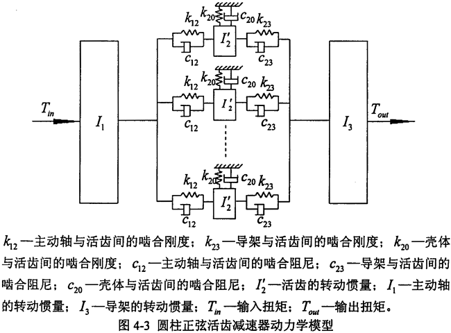 機械傳動系統(tǒng)把運動和動力由動力源傳遞給機器執(zhí)行件的工作過程中,經(jīng)常會受到激振力和激振力矩的作用,從而使傳動系統(tǒng)的零部件產(chǎn)生扭轉(zhuǎn)振動,振動將直接影響到機械系統(tǒng)的精度、效率、壽命、安全性和可靠性,由此而產(chǎn)生的噪音也對環(huán)境產(chǎn)生干擾和危害。因此在設(shè)計機械傳動系統(tǒng)時,必須考慮將振動的量級控制在一定范圍內(nèi),以保證系統(tǒng)具有良好的動態(tài)特性。為設(shè)計高性能的圓柱正弦活齒減速器,了解該傳動系統(tǒng)的動態(tài)特性,有必要對其進行扭振動力學(xué)分析,以便評價其振動水平,并找出影響動態(tài)特性的薄弱環(huán)節(jié),從而為進一步動態(tài)結(jié)構(gòu)優(yōu)化設(shè)計、提高減速器的動態(tài)性能提供了理論依據(jù)。評價傳動裝置的動態(tài)性能通常有試驗法和計算法兩種方法。一般情況下,試驗法可獲得較準確的結(jié)果,但只適用于評價給定的實物或模型。而計算法通過建立動力學(xué)模型,在設(shè)計階段就可獲得評價系統(tǒng)動態(tài)性能所需的各種數(shù)據(jù)資料,并可根據(jù)分析結(jié)果來進行優(yōu)化設(shè)計,從而在設(shè)計階段就能得到一個具有良好動態(tài)特性的系統(tǒng)設(shè)計方案,因此計算方法比試驗法更經(jīng)濟實用,但數(shù)學(xué)模型的建立具有一定的難度。