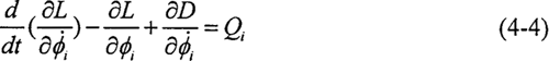 將式(4-3)代入拉格朗日方程(4-4)中,得到系統(tǒng)的動力學(xué)方程如下所示: