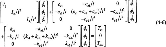 將式(4-5)用矩陣形式表達,則系統(tǒng)的動力學(xué)方程可寫為: