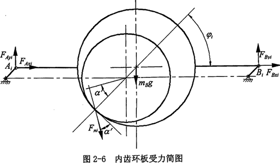 1.轉(zhuǎn)臂軸承上的作用力分析 內(nèi)齒環(huán)板受力見(jiàn)圖2-6所示。