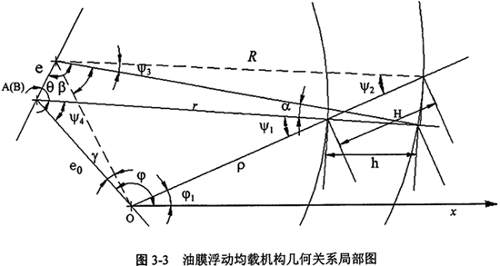 油膜浮動均載機構(gòu)的幾何關(guān)系如圖3-2和圖3-3所示