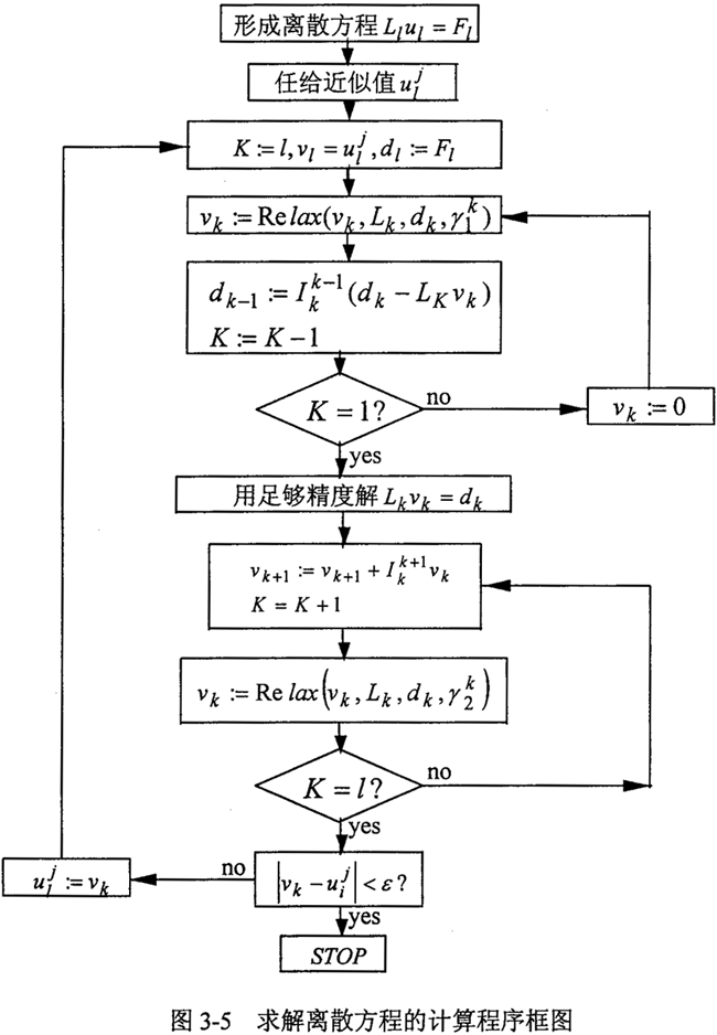 上述過程重復進行,直至在最粗網(wǎng)格上得到滿足精度要求的精確解。