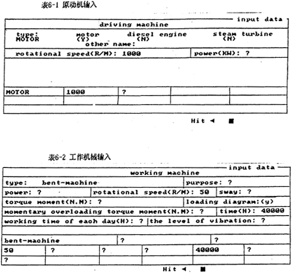 系統(tǒng)的輸入是專家系統(tǒng)的“開場條件”,人工設(shè)計的方法是由定貨單位向設(shè)計人員提供任務(wù)書(以口頭或書面形式),設(shè)計人員通過這些已知條件進(jìn)行設(shè)計工作。專家系統(tǒng)則要求設(shè)計人員(或由定貨人員)與計算機進(jìn)行“對話”,以便使專家系統(tǒng)了解原始的已知條件。事實上,由于受人工智能和計算機技術(shù)發(fā)展的限制,還不能同計算機形成視、聽對話,因而,圓柱齒輪減速器設(shè)計專家系統(tǒng)仍采用傳統(tǒng)CAD所采用的方法,即采用精確的輸入方式(或稱數(shù)據(jù)輸入方式而非語言物入方式)。