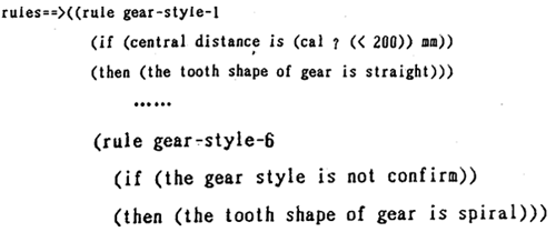 規(guī)則l的條件項,初次使用時,由于中心距尚未確定,不能觸發(fā)運用。系統(tǒng)采用的方法是先用初次選用的齒形參與傳動計算,待求出中心距時再次調(diào)用該規(guī)則集進(jìn)行推理。若于原來的假設(shè)發(fā)生沖突,撤銷原假設(shè)并以新事實重新進(jìn)行計算。