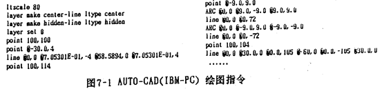 現(xiàn)在,各種計(jì)算機(jī)語言中,如PASCAL, FORTRAN, BASIC等均帶有圖語句。有諸如直線,圓弧,圓等基本指令(人工智能語言GCLISP versionl.0版因?yàn)闆]有三角等計(jì)算函數(shù)的功能,所以沒有圓弧、圓等指令)。相應(yīng)的,各種計(jì)算機(jī)輔助繪圖軟件包,如IMB-PC上常用的AUTO-CAD, APOLLO工作站上使用的GPR均含有繪圖的基本單元,如繪制直線、點(diǎn)、中心線、折線、圓、圓弧等墓本圖形命令,進(jìn)一步的如APOLLO的S7K繪圖軟件包的三維實(shí)體造型等功能,其基本圖素如圓柱體、錐體、球體、立方體等;并都具有圖形平移、旋轉(zhuǎn)、縮小、放大等功能。但是,各繪圖軟件包一般都自成體系,比較難以通用。作者通過對這些軟件的分析,用LlSP編寫了一個(gè)比較通用的二維繪圖軟件包,在使用時(shí),只要按所使用的軟件的相應(yīng)格式填寫,就可輸出相應(yīng)的繪圖命令。分別介紹如下: