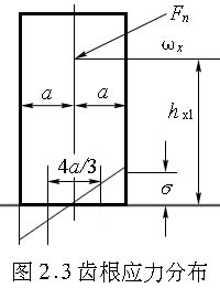 根部的應力狀態(tài)比較復雜,在此把它看成是線性分布[85],如圖2.3所示