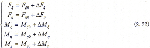 △Fξ,△Fη,△Mξ,△Mη,△Mz分別為相應的動態(tài)力和動態(tài)力偶矩。