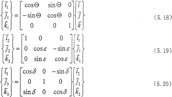 在各坐標系中,單位矢量之間的關系