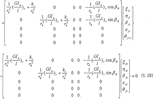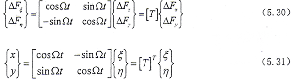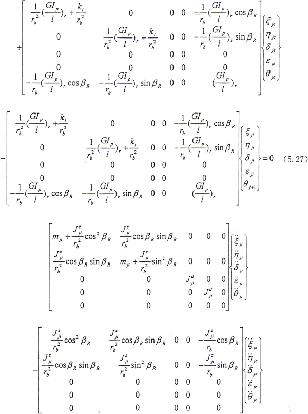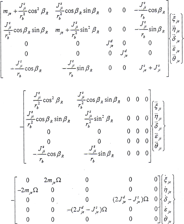 (5.27)式、(5.28)式中所定義的Ω方向與Z軸方向相同,當Ω方向與Z軸方向相反時,Ω以-Ω代入即可。從上式可見,方程系數矩陣中的元素與βE有關,而βR又與系統(tǒng)的廣義坐標有關,因此方程是非線性的。只有在βR變化很小時才能進行線性分析。