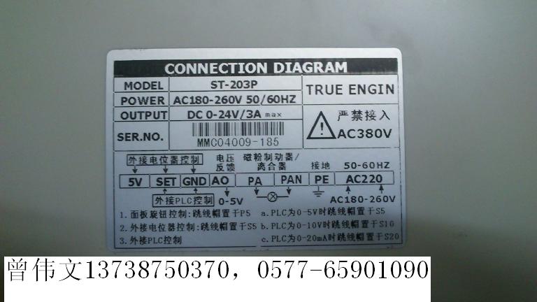 MODEL:ST-203P數(shù)顯手動張力控制器溫州祺強機電設(shè)備有限公司(曾偉文13738750370,0577-65901090,zhwewe123@163.co... 2019-1-22 [重慶重慶] | 面議/臺 1臺起訂 | ![]() ![]() ![]() 金牌會員 | ![]() | |