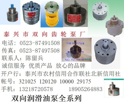 雙向潤(rùn)滑油泵,雙向齒輪油泵,雙向齒輪暫無(wú) 1,SNBY型雙向潤(rùn)滑油泵的主要特點(diǎn)是在泵軸不管是正轉(zhuǎn)或是反轉(zhuǎn)時(shí),油泵都能同一方向等量... 2011-11-29 |
