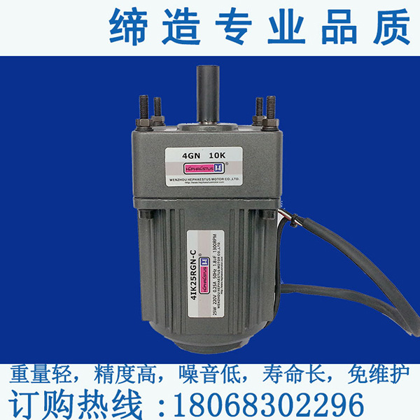 調(diào)速電機:配合速度控制器可大范圍調(diào)速,內(nèi)部備有轉(zhuǎn)速傳感器,實現(xiàn)反饋控制,因此電源頻率有變化,其規(guī)定轉(zhuǎn)速絕無變化,三相電機做速度控制時一般使用變頻器控制; 單相感應(yīng)電機:使用電容器式感應(yīng)電機,可連續(xù)運轉(zhuǎn)使用,高功率低噪音; 可逆電機:因采用平衡繞線方式并內(nèi)裝簡易制動機構(gòu),能夠瞬時間轉(zhuǎn)化旋轉(zhuǎn)方向,具有瞬間轉(zhuǎn)換轉(zhuǎn)向功能幾乎不會發(fā)生超程現(xiàn)象; 剎車電機:能短時間內(nèi)剎車,在無負載時起程為2~4轉(zhuǎn)內(nèi)剎車,發(fā)揮安全的剎車性能;