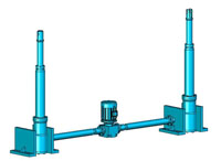 減速機(jī)通過減速后,由兩個(gè)萬向傳動(dòng)軸傳至左、右兩邊箱體內(nèi),再通過一對(duì)齒輪減速帶動(dòng)左右箱體內(nèi)螺桿、螺母把電機(jī)的旋轉(zhuǎn)運(yùn)動(dòng)變?yōu)橹本運(yùn)動(dòng),利用減速電機(jī)的正反轉(zhuǎn)完成推拉動(dòng)作。左、右兩推桿同時(shí)動(dòng)作、推力、拉力、速度均一致。TDT、TDTW型雙臺(tái)式推桿結(jié)構(gòu),具有良好的適應(yīng)性,特別是推桿體加長(zhǎng)桿部分,采用了不銹鋼材料,保證了野外、露天和污水池等惡劣環(huán)境下推桿的正常工作。