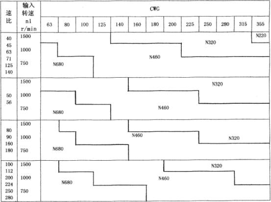 3 減速器采用蝸輪蝸桿潤滑油。一般情況下潤滑油牌號可由下表直接選取。