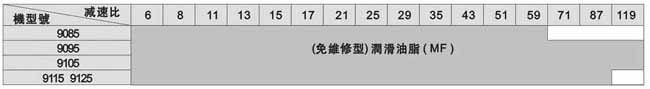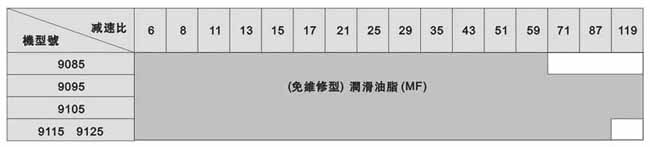 注:此表所列為輸入轉(zhuǎn)速為標準轉(zhuǎn)速情況下,標準潤滑方式。