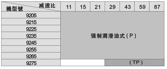 TP:定量泵強制潤滑(見表9)