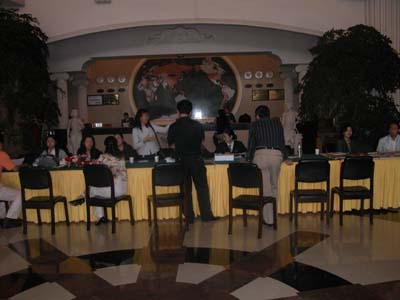 | 中國通用機(jī)械工業(yè)協(xié)會第五屆會員代表大會即將在云南開幕.會議地址在美麗的昆明云安會都舉行,目前會議報(bào)到工作正在進(jìn)行. 昆明云安會都坐落于昆明風(fēng)光秀麗的風(fēng)景名勝區(qū)---西山"睡美人"腳下,碧波蕩漾的滇池湖畔.云安會都庭院寬敞,綠樹成蔭,鮮花四季,古榕蒼翠,小橋流水,魚躍荷池,鳥鳴翠柳.中國通用機(jī)械工業(yè)協(xié)會第五屆會員代表大會報(bào)道接待工作就在這人與自然和諧相生的景象中積極的展開.