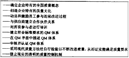 成功地實施與運用QM 觀念的關(guān)鍵是,向企業(yè)管理者、員工以及供應(yīng)商(從合作伙伴的意義出發(fā))展示現(xiàn)代的質(zhì)量、思維和行動的方式,從而實現(xiàn)所要求的全面企業(yè)質(zhì)量。應(yīng)該由上述參與者采用現(xiàn)有的最廣泛的QS(質(zhì)量保證)方法和工具,務(wù)必符合要求和使成本合理及優(yōu)化顧客利益,參與者必須了解,為了在當(dāng)前的邊界條件下滿足質(zhì)量要求,必須做到: