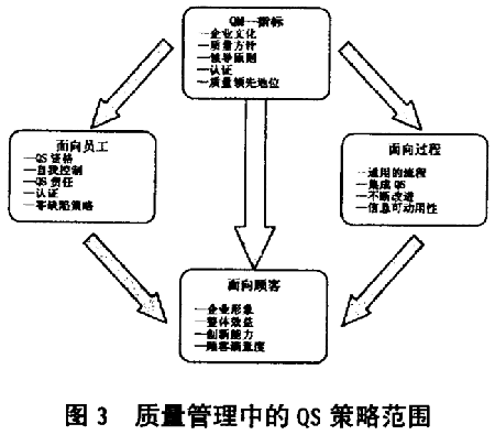 在“面向員工”的QS策略范圍內(nèi),涉及到提高員工的QS素質(zhì),直至自行控制和在工作崗位上承擔(dān)Qs 責(zé)任,從而實施“零缺陷”策略。與集成化的質(zhì)量保證相結(jié)合的通用的流程、以及過程的透明度和連續(xù)改進是“面向過程”的標(biāo)志。TQM 指標(biāo)將上述“面向員工”和“面向過程”的措施結(jié)合在一起,達到旨在吸引顧客的“面向顧客”的目的。