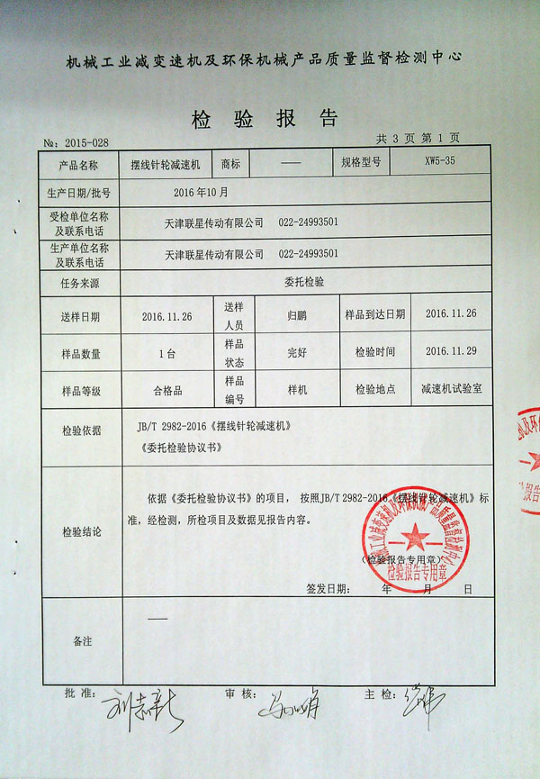 >>擺線針輪減速機(jī)檢測報(bào)告