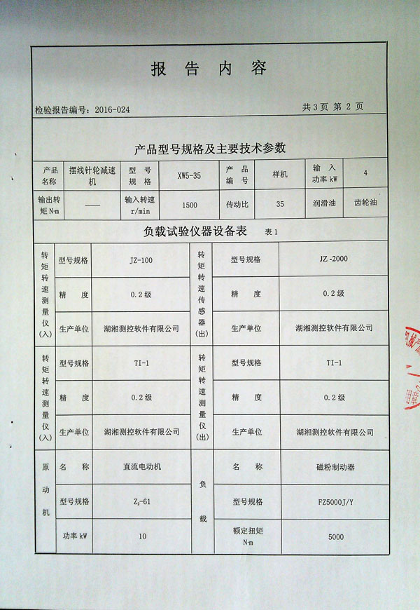 擺線針輪減速機(jī)檢測報(bào)告