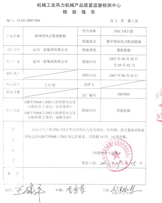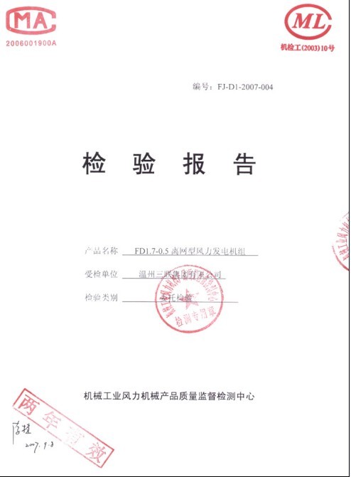機械工業(yè)風(fēng)力機械產(chǎn)品質(zhì)量監(jiān)督檢測中心